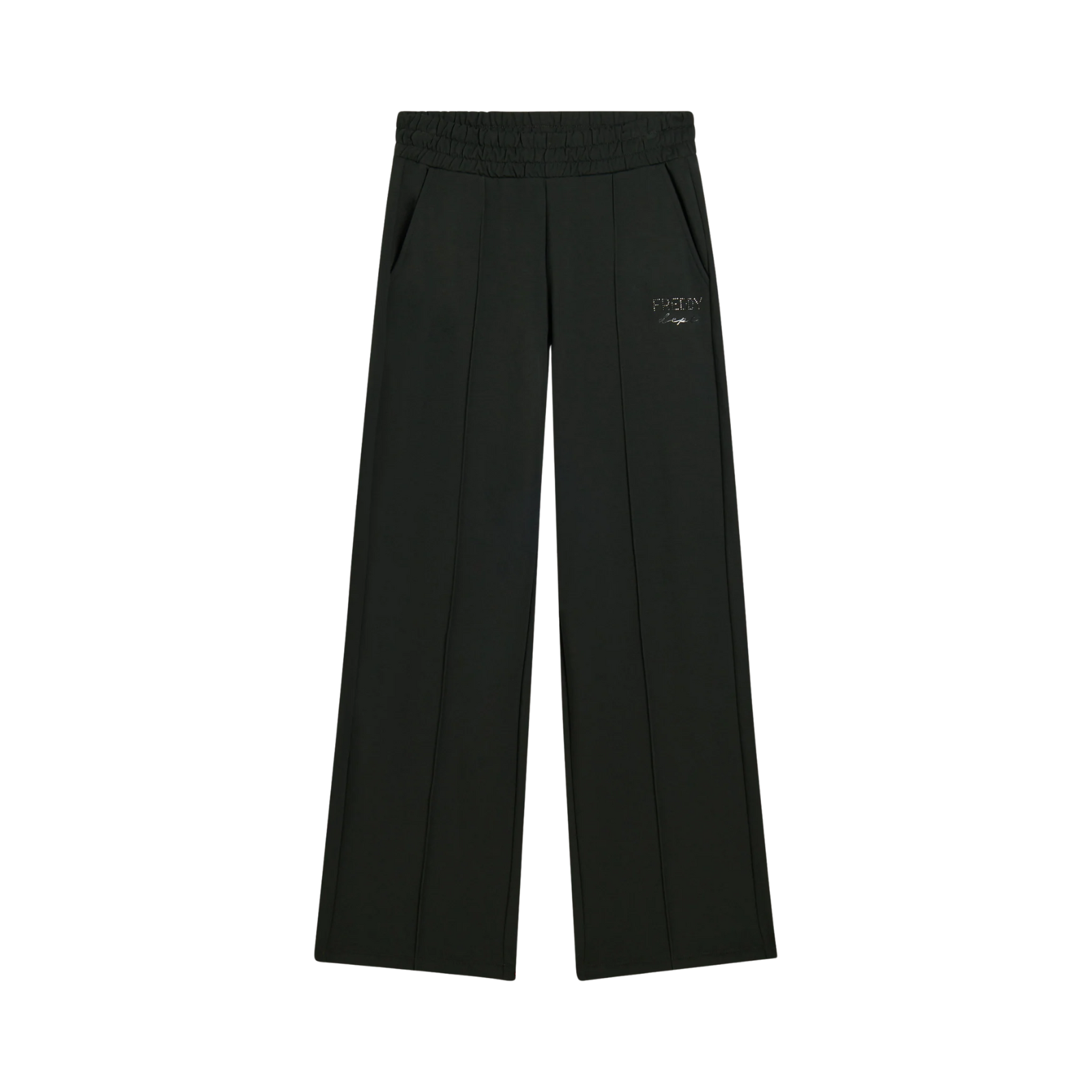 Questi pantaloni wide leg in felpa garzata elasticizzata uniscono comodità e stile con una vestibilità comfort e una linea ampia che valorizza ogni silhouette. La gamba dritta è arricchita da una cucitura centrale decorativa che percorre tutta la lunghezza, creando un effetto slanciato e moderno.